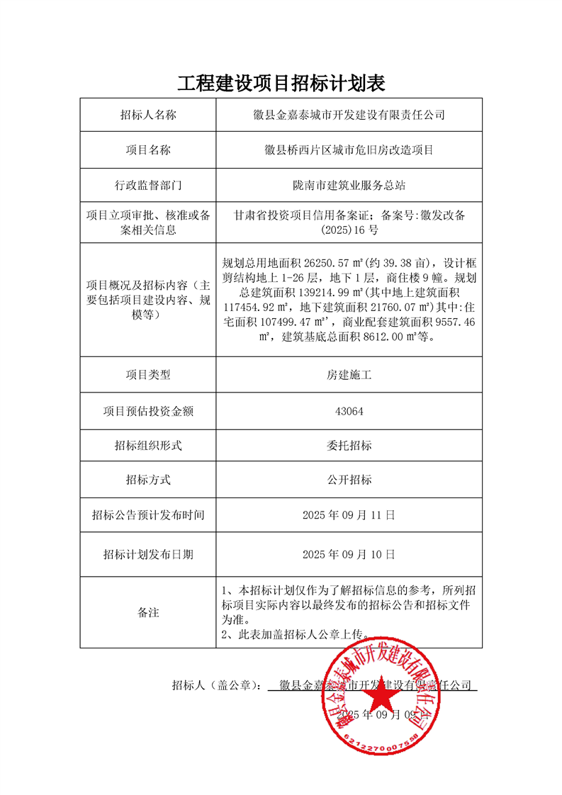 施工招標計劃表—徽縣橋西片區(qū)城市危舊房改造項目(1).pdf