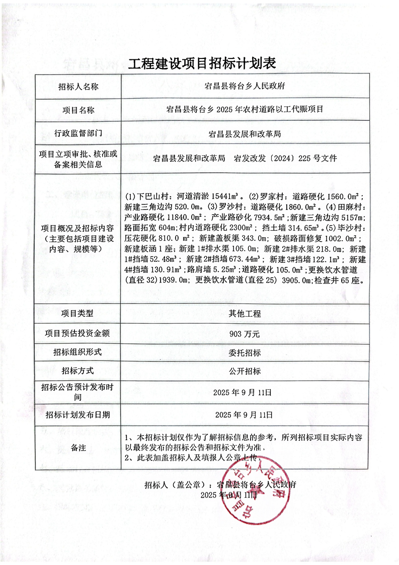 宕昌縣將臺鄉(xiāng)2025年農(nóng)村道路以工代賑項目