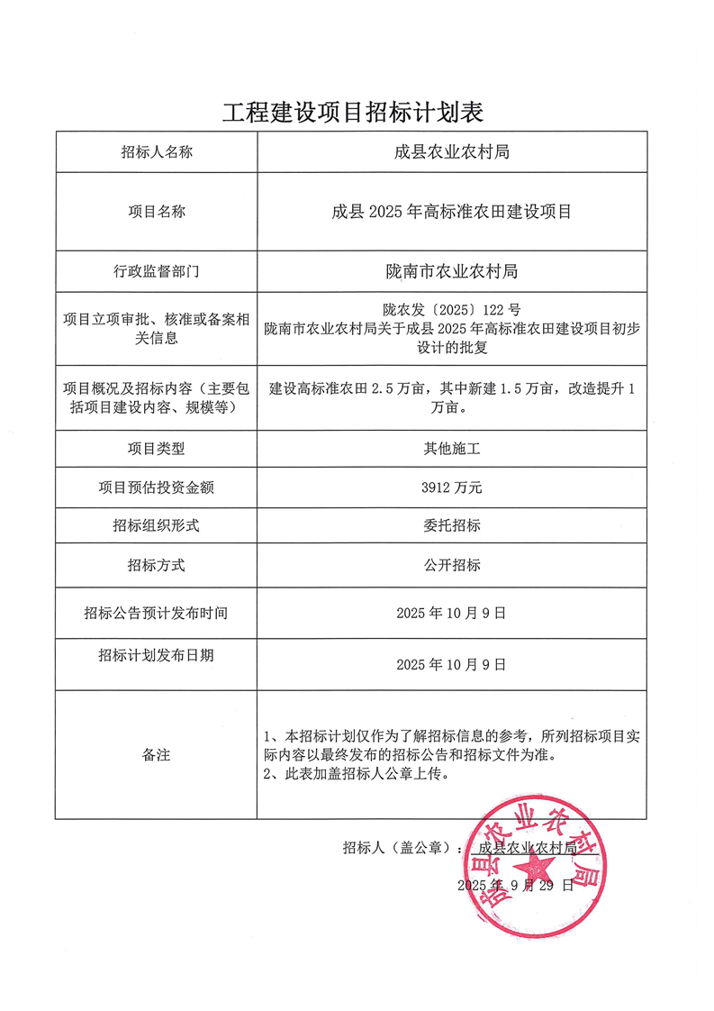 成縣2025年高標(biāo)準(zhǔn)農(nóng)田建設(shè)項(xiàng)目
