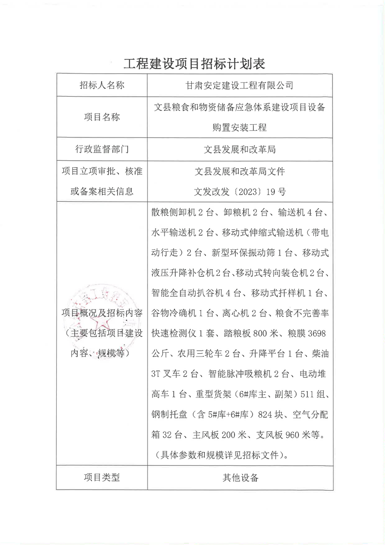 文縣糧食和物資儲備應急體系建設項目設備購置安裝工程