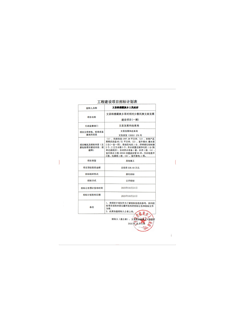 文縣鐵樓藏族鄉(xiāng)草河壩村少數(shù)民族文旅發(fā)展建設(shè)項(xiàng)目(一期)