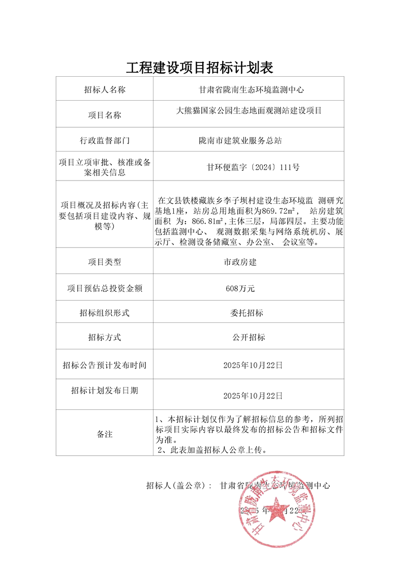 大熊貓國家公園生態(tài)地面觀測站建設(shè)項目