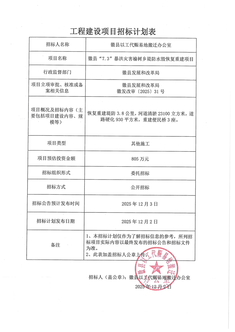 首頁 > 交易信息 > 工程建設 > 項目招標計劃