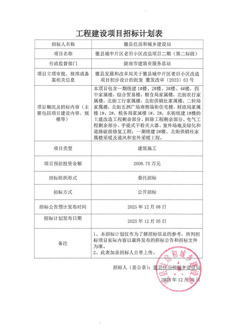附件:工程建設(shè)項(xiàng)目招標(biāo)計劃表徽縣城中片區(qū)老舊小區(qū)改造項(xiàng)目二期(第二標(biāo)段).pdf