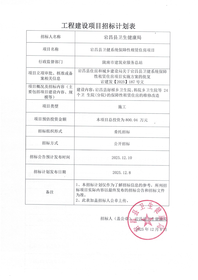宕昌縣衛(wèi)健系統(tǒng)保障性租賃住房項(xiàng)目