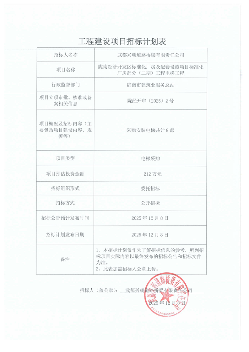 隴南經(jīng)濟開發(fā)區(qū)標(biāo)準(zhǔn)化廠房及配套設(shè)施項目標(biāo)準(zhǔn)化廠房部分(二期)工程電梯工程