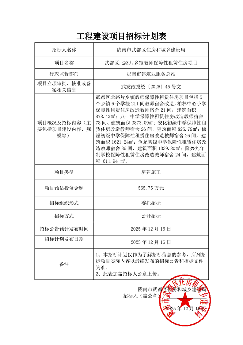 武都區(qū)北路片鄉(xiāng)鎮(zhèn)教師保障性租賃住房項(xiàng)目