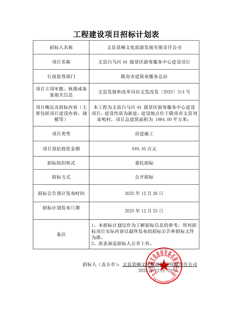 文縣白馬河4A級景區(qū)游客服務中心建設項目