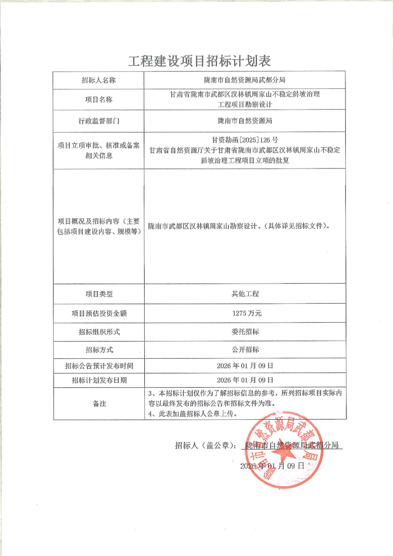 隴南市武都區(qū)漢林鎮(zhèn)周家山不穩(wěn)定斜坡治理工程勘察設(shè)計(jì)