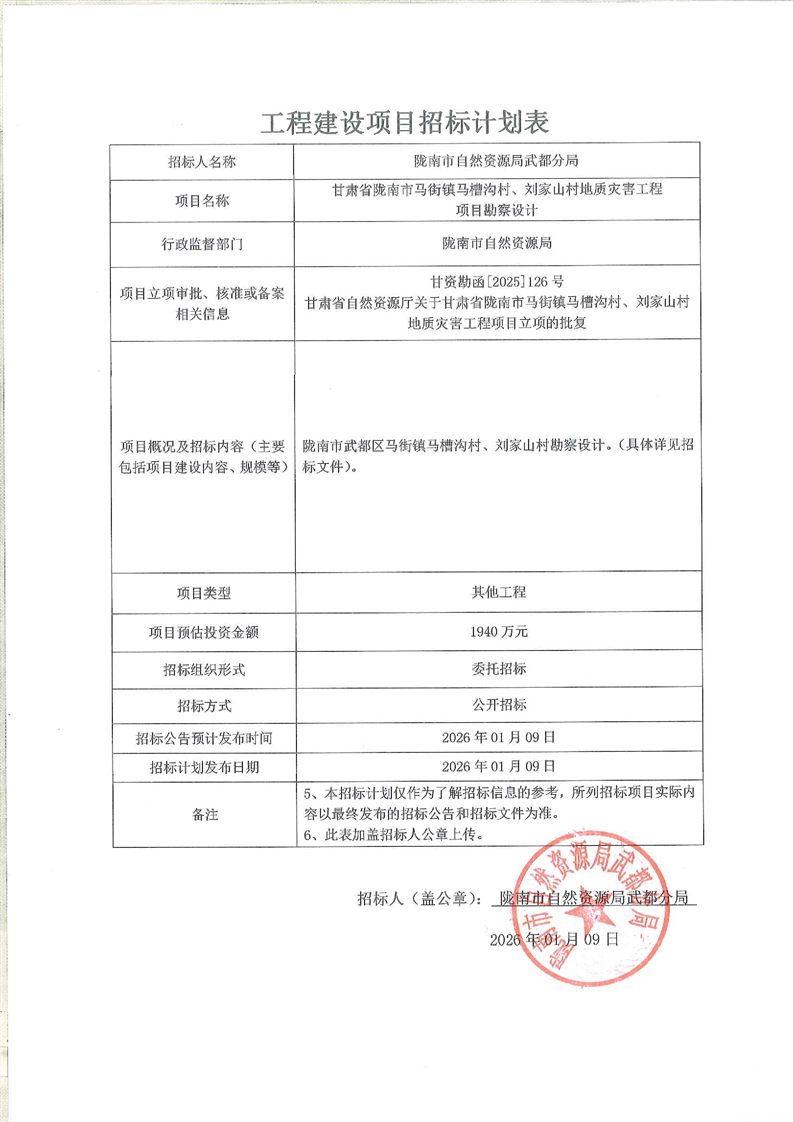 隴南市武都區(qū)馬街鎮(zhèn)馬槽溝村、劉家山村地質(zhì)災(zāi)害治理工程勘察設(shè)計(jì)