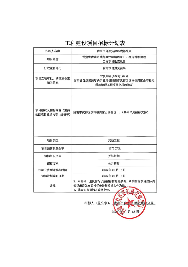 隴南市武都區(qū)漢林鎮(zhèn)周家山不穩(wěn)定斜坡治理工程項目勘查設(shè)計