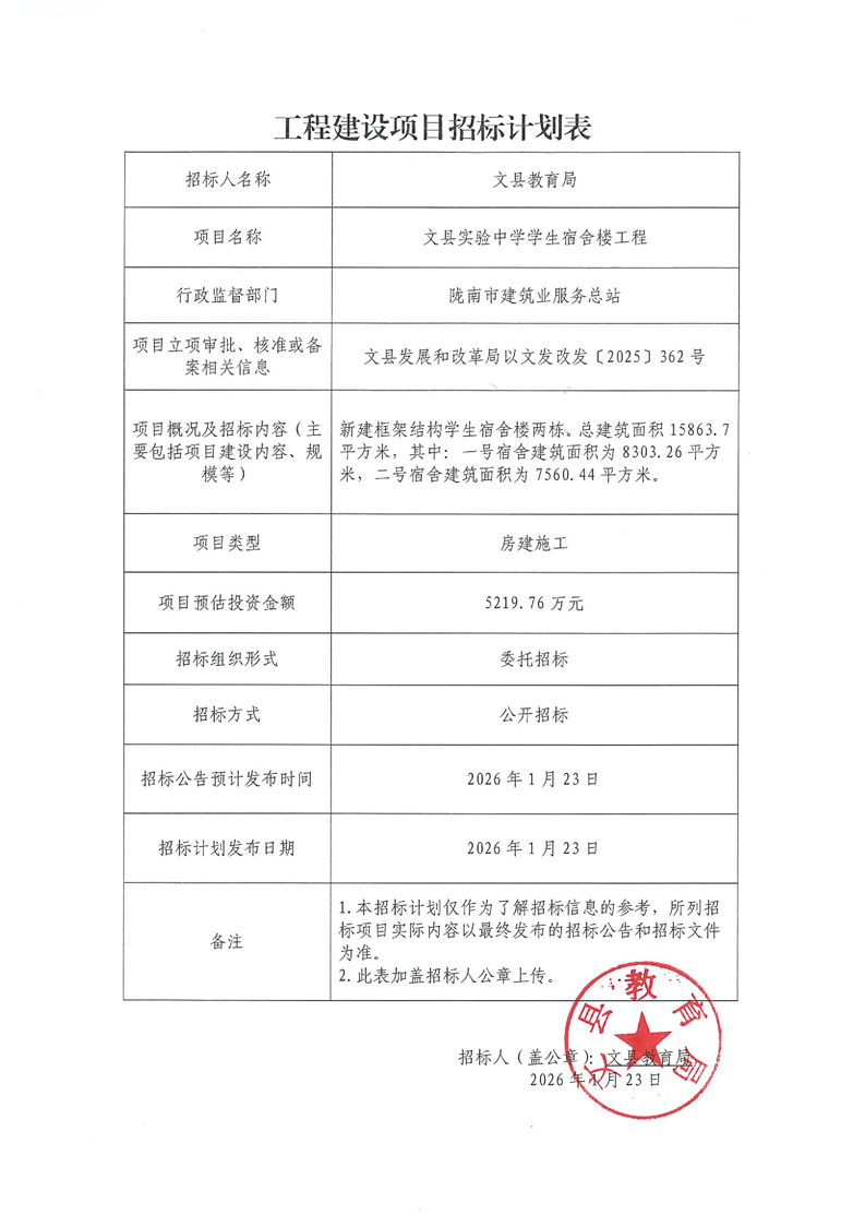 文縣實(shí)驗(yàn)中學(xué)學(xué)生宿舍樓工程