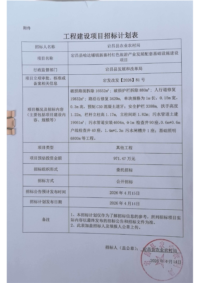 宕昌縣哈達(dá)鋪鎮(zhèn)新寨村紅色旅游產(chǎn)業(yè)發(fā)展配套基礎(chǔ)設(shè)施建設(shè)項(xiàng)目