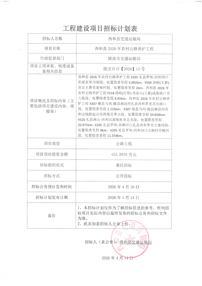 西和縣2026年農(nóng)村公路養(yǎng)護工程