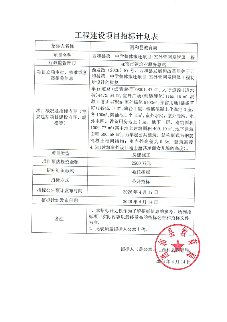 西和縣第一中學整體搬遷項目-室外管網(wǎng)及附屬工程