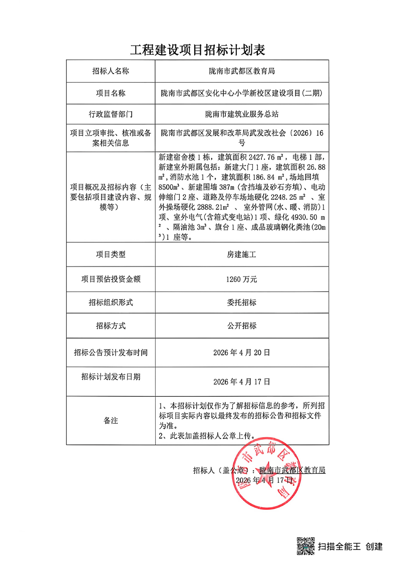 隴南市武都區(qū)安化中心小學(xué)新校區(qū)建設(shè)項目(二期)